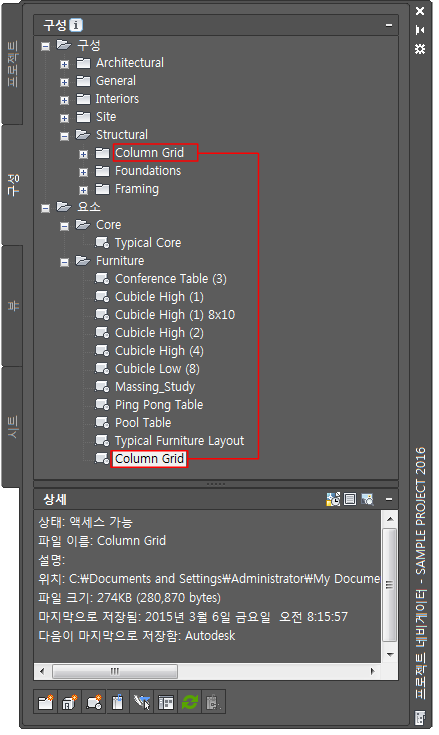 구성을 작성한 후에야 이 구성이 실제로 반복 요소임을 인식할 수도 있습니다. 예를 들어, 기둥 그리드를 작성한 후 다른 바닥에 지금 사용하려고 합니다. 구성을 쉽게 요소로 변환하고 다중 구성에 참조할 수 있습니다.