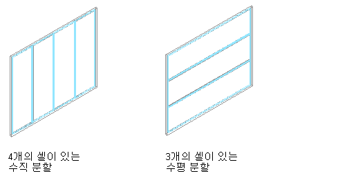 보다 복잡한 커튼월 단위 그리드를 작성할 경우, 셀 개수가 고정된 표준 그리드로 시작한 후 나중에 해당 그리드를 수동으로 세부 조정하려는 경우도 있습니다. 먼저 셀 수가 고정된 배치를 작성한 후 수동 그리드로 변환할 수 있습니다.