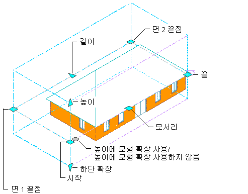 주: 높이 모드에 대한 모형 범위를 사용할 경우 단면의 높이는 단면에 있는 객체의 높이에 따라 결정되지만 동적으로 수정되지는 않습니다.