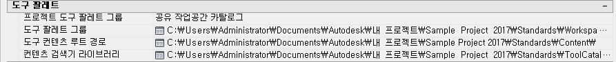 | 프로젝트 유형 | 도구 팔레트 그룹 파일 위치 | 프로젝트 도구 팔레트 그룹 |