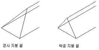 다음 과정에 따라 선택한 지붕 도구의 특성을 가진 새 박공 지붕을 추가하십시오. 단일 물매 지붕을 작성한 후 필요에 따라 박공에 각각의 모서리를 설정합니다. 박공 끝에 물매를 지정하여 추녀 마루를 작성할 수 있습니다.