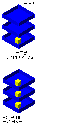 구성을 레벨에 복사하면 다층 건물을 컨텐츠로 쉽게 채울 수 있습니다. 첫 번째 레벨의 구성을 그린 후 선택한 각 레벨에 대해 그 구성의 사본을 작성합니다.