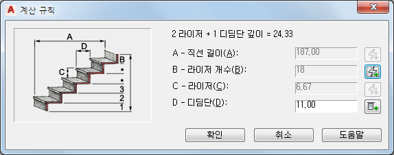 다음 절차에 따라 계단 계산과 관련된 다양한 치수를 조정하십시오.