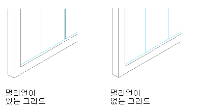 다음 절차에 따라 조합창/문에서 멀리언을 제거하십시오. 모서리 폭 및 깊이가 0인 멀리언 정의를 작성할 수 있습니다. 멀리언이 차지했던 공간에 인접한 채우기가 확장되어 채워집니다. 이것은 버트 글래이징을 효과적으로 나타내는 방법입니다.