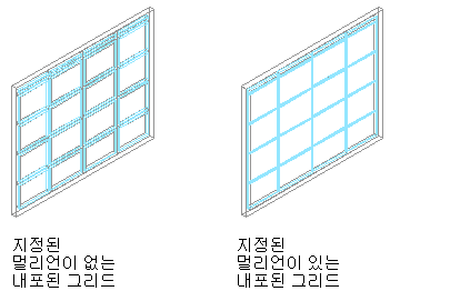 커튼월의 멀리언은 그리드 셀 사이에 있는 모서리입니다. 1차 그리드와 각 내포된 그리드에는 다른 그리드와 별도로 정의된 멀리언이 있습니다.