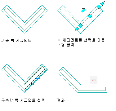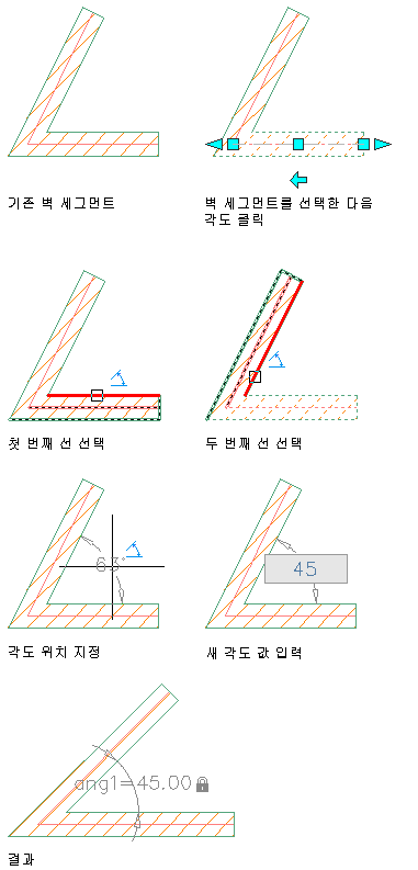 각도 구속조건을 사용하여 부착된 두 벽 세그먼트 사이의 각도를 유지합니다.