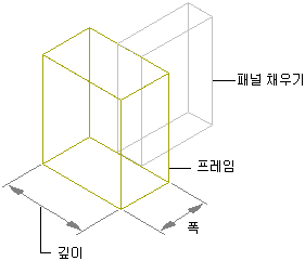 프레임의 폭 및 깊이를 지정하여 해당 프레임을 정의할 수 있습니다. 전체 프레임 크기는 커튼월 그리드의 길이 및 높이에 의해 결정됩니다.