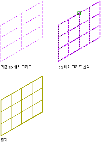 2D 배치 그리드를 기준으로 하는 커튼월 단위 그리드를 작성할 수 있습니다. 도면에 2D 배치 그리드가 이미 있는 경우 해당 그리드를 커튼월 단위로 쉽게 변환할 수 있습니다. 또한 배치 그리드에 익숙한 경우 커튼월 단위를 작성한 후 커튼월 명령을 적용하여 보다 자세한 내용을 확인할 수 있습니다.
