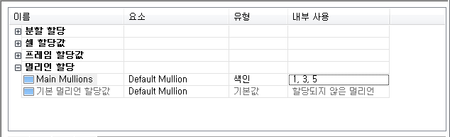 할당값을 사용할 조합창/문 멀리언을 지정하려면