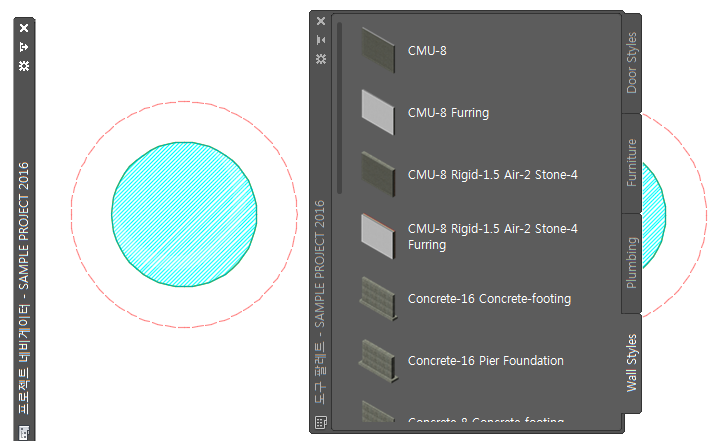 다음 과정에 따라 사용하지 않을 때는 도구 팔레트 세트를 숨기십시오. 도구 팔레트 세트는 도구 팔레트 세트 밖으로 커서를 이동하면 숨겨지고 제목 막대에만 표시됩니다. 제목 막대 위에서 커서를 움직이면, 도구 팔레트 세트가 다시 표시됩니다.