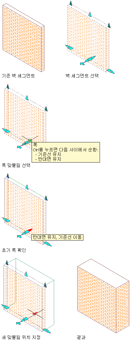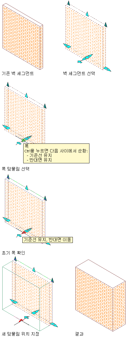 벽 자리맞추기 선을 유지하면서 그립으로 벽 폭을 변경하려면