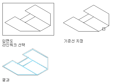 지정한 기준선 옵션을 사용하여 라인워크를 커튼월로 변환