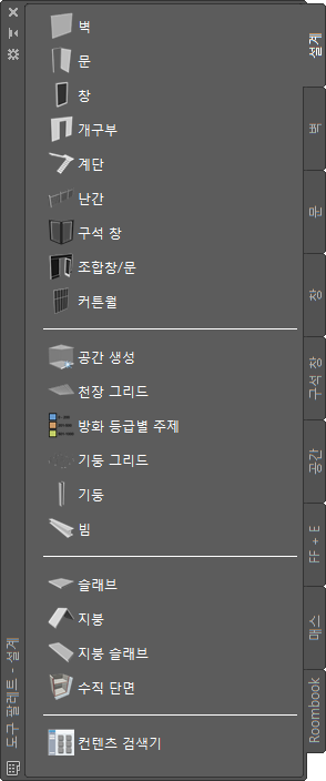 도구 팔레트는 모형에서 객체를 작성하기 위해 도구에 액세스할 때 가장 많이 사용되는 방법입니다. 표준 객체를 위한 도구와 특정 스타일 및 특성을 가진 객체를 위한 도구를 모두 사용할 수 있습니다. 도구 팔레트는 도구 팔레트 세트에서 도구 팔레트 그룹별로 구성됩니다. 자신만의 도구 팔레트를 작성할 수도 있고 컨텐츠 검색기에서 기존 도구 팔레트를 복사할 수도 있습니다.
