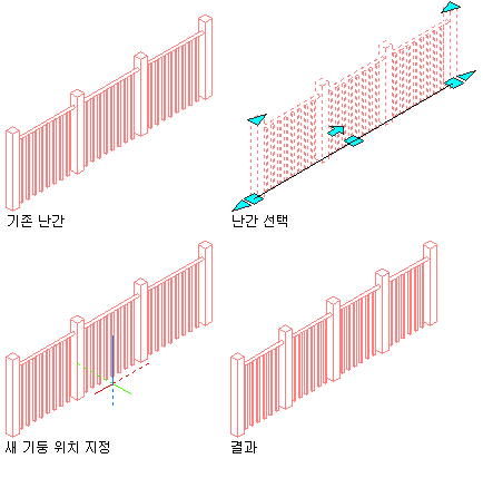 난간에 기둥을 추가하려면
