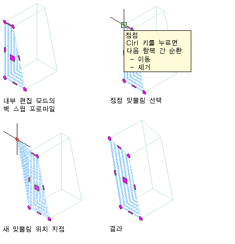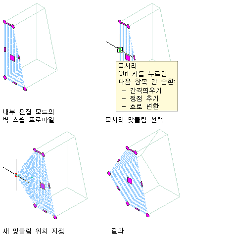 내부 편집 벽 스윕 프로파일 모서리에 정점을 추가하려면