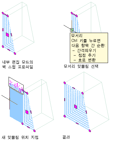 내부 편집 벽 스윕 프로파일 모서리 간격띄우기