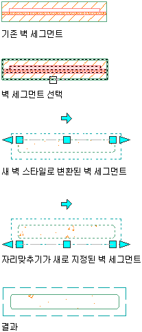 기존 벽 세그먼트에 다른 벽 도구 및 새 특성 적용