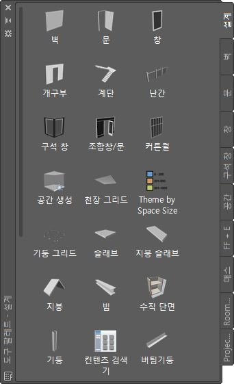 AutoCAD Architecture의 도구는 세 가지 범주로 나뉩니다.
