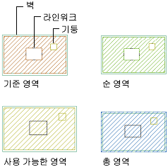 | 사무실, 상점, BCA | 벽의 중심선에서 측정됨 |