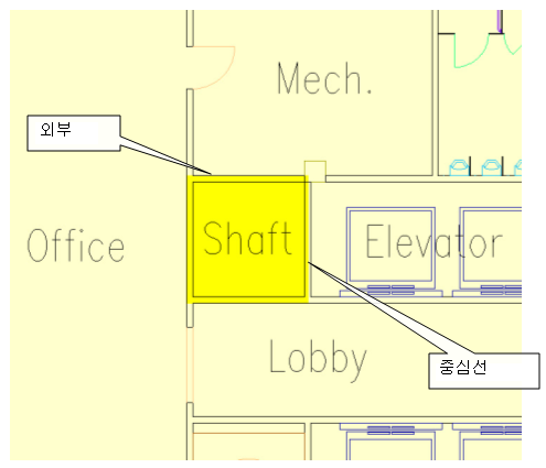 총 경계는 도로 임계지/외부가 아닌 인접 공간이 있을 경우 벽의 중심선으로 작성됩니다.