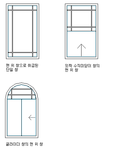 | 상위 새시에만 문살 부착 | 창에서 맨 위를 선택합니다. 맨 위도 단일 새시에 적용됩니다. |