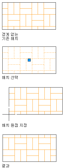 해치가 지정한 끝점에서 원점과 같이 재배치됩니다.