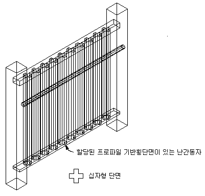 | 선택된 프로파일을 선택된 구성요소 사이의 난간에 추가 | 구성요소 난간동자, 고정 기둥 및 연동 기둥 구성요소만 선택할 수 있습니다. |