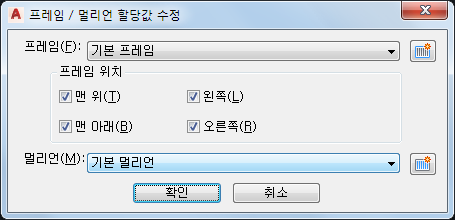 | 선택한 그리드의 프레임 수정 | 프레임 정의를 선택한 후 확인을 클릭합니다. |
