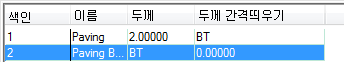 예를 들어, 아래쪽 모서리가 슬래브 기준선과 동일한 두께 변수의 포장 기준 바로 위에 2'' 포장 구성요소를 배치하는 스타일을 작성하려면 두께 및 두께 간격띄우기를 다음과 같이 지정합니다.