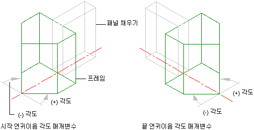 | 시작점에서 | 시작 연귀이음에 각도를 입력한 다음 Enter 키를 누릅니다. |