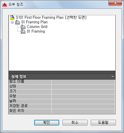 - 외부 참조 대화상자에서 외부 참조의 상세 정보를 봅니다.