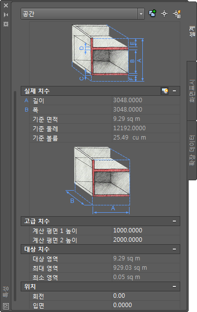 3D 자유형 공간으로 작업을 수행할 경우 두 가지 서로 다른 절단 평면 높이에서 3D 자유형 공간의 영역을 계산할 수 있습니다. 이 방식은 서로 다른 높이를 서로 다르게 계산하는 다락에 유용합니다.