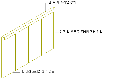 마찬가지로 다중 프레임 정의를 작성한 후 각 프레임 모서리(맨 위, 맨 아래, 왼쪽 또는 오른쪽)에 서로 다른 정의를 할당할 수 있습니다. 또한 다중 멀리언 정의를 작성할 수도 있습니다.