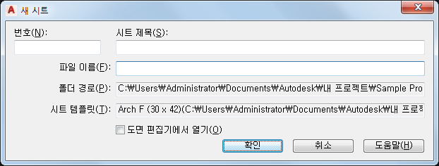 다음 절차에 따라 새 시트를 작성하십시오. 각각의 새 시트는 새 시트 도면에 작성됩니다.