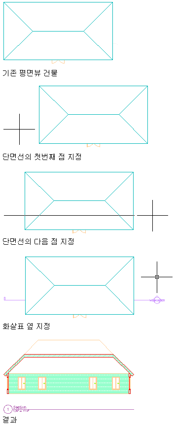 단면선을 그린 후 선에서 라이브 단면 뷰를 위한 단면 객체를 작성할 수 있습니다.