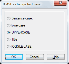 Select case [Sentence/Lower/Upper/Title/toGgle] <TITLE>: 옵션을 선택합니다.