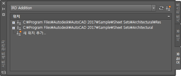 폴더 위치를 추가 및 제거하여 현재 시트 세트에 사용할 수 있는 도면 파일을 조정할 수 있습니다.