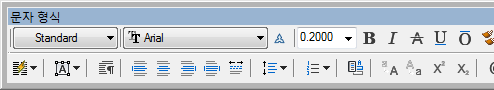 주: MTEXTTOOLBAR 시스템 변수는 문자 형식 도구막대의 화면표시를 조정합니다.