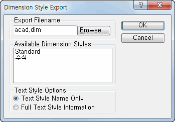 | Text Style Options | 치수의 전체 문자 스타일 정보 또는 문자 스타일 이름만 ASCII 파일에 저장합니다. |