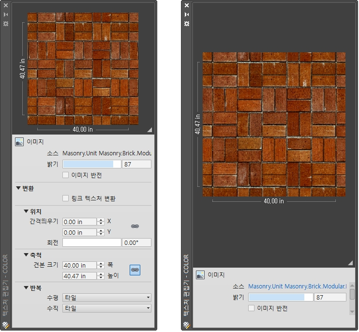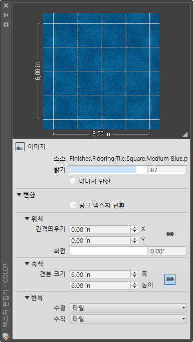 | 텍스처 유형 | 위치 | 축척 | 반복 |