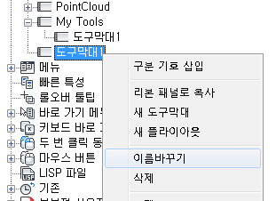 도구막대에 새 플라이아웃이 작성되고 사용된 풀다운 메뉴를 기준으로 새 도구막대도 작성됩니다.