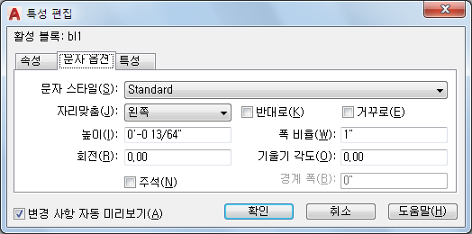 속성 문자의 문자 스타일을 지정합니다. 이 문자 스타일의 기본값이 이 대화상자에 표시된 문자 특성으로 지정됩니다.