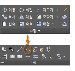 FILLET 명령(명령 윈도우에 F 입력)은 선택한 두 객체에 접하는 호를 작성하여 둥근 구석을 작성합니다. 객체를 선택한 곳을 기준으로 모깎기가 작성됩니다.
