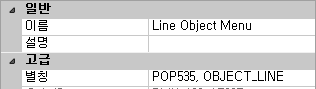 바로 가기 메뉴에서 활성 명령과 관련된 메뉴 옵션을 삽입하려면 별칭 COMMAND_commandname을 사용해야 합니다. commandname의 문자는 임의의 유효한 명령일 수 있습니다. 예를 들어, LINE 명령을 사용할 때 바로 가기 메뉴의 메뉴 옵션이 나타나도록 하려는 경우 별칭 COMMAND_LINE을 사용합니다.