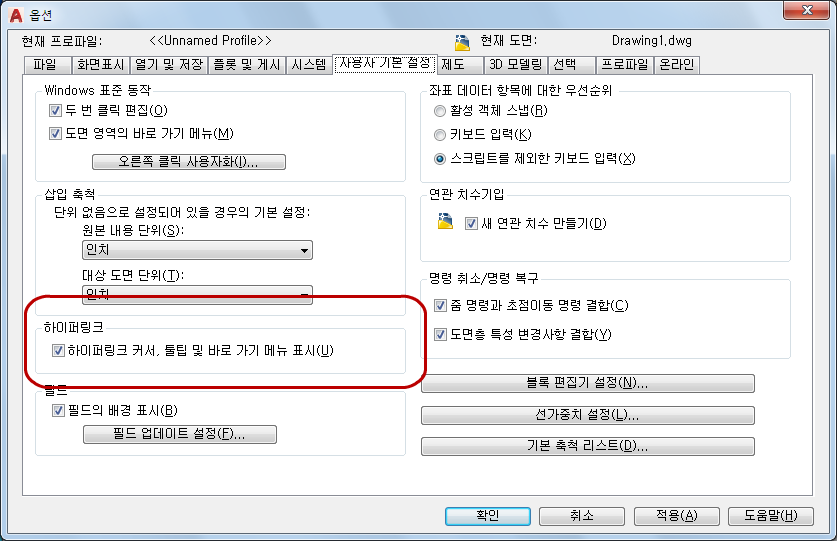 옵션 대화상자의 사용자 기본 설정 탭에서 하이퍼링크 정보 표시를 사용하도록 설정합니다.