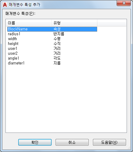 블록 특성 테이블에 추가할 수 있는 매개변수의 이름을 표시합니다.