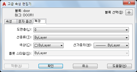 속성이 켜진 도면층과 속성 문자의 선가중치, 선종류 및 색상을 지정합니다. 도면이 플롯 스타일을 사용하는 경우, 특성 탭을 사용하여 속성에 플롯 스타일을 지정할 수 있습니다.