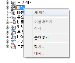 사용자화 탭에 있는 <파일 이름>의 사용자화 창에서 메뉴 노드를 마우스 오른쪽 버튼으로 클릭합니다. 새 메뉴를 클릭합니다.