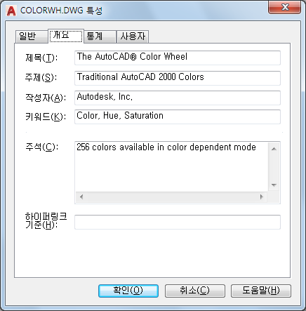 도면 내에 삽입되는 모든 상대 링크에 사용하는 기준 주소를 지정합니다. http://www.autodesk.co.kr과 같은 인터넷 위치 또는 네트워크 드라이브의 폴더에 대한 경로를 지정할 수 있습니다.