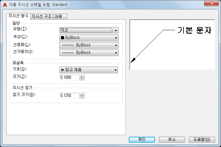 지시선 구조 탭(다중 지시선 스타일 수정 대화상자)